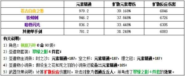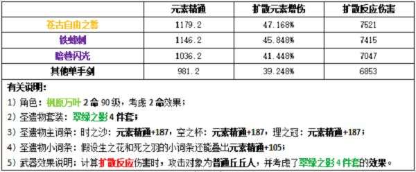 小结:经过测试服的一轮加强,万叶的加伤能力由原本元素精通的0.03%到现在元素精通的0.04%,如今看来已经比较可观了,再加上风套的减抗效果,万叶对于可扩散元素的输出提升是巨大的,相比于砂糖,万叶比较适合放在一些不主打反应的元素队(永冻流队伍,纯元素输出队伍等)。
