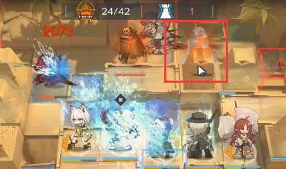然后老地方下银灰,银灰真银斩用来清理幻影。清掉幻影直接撤退。凯尔希开技能击杀幻影弩手本体。