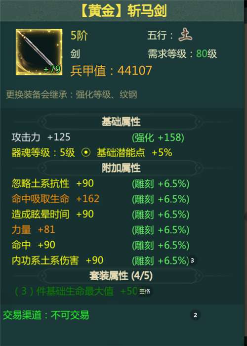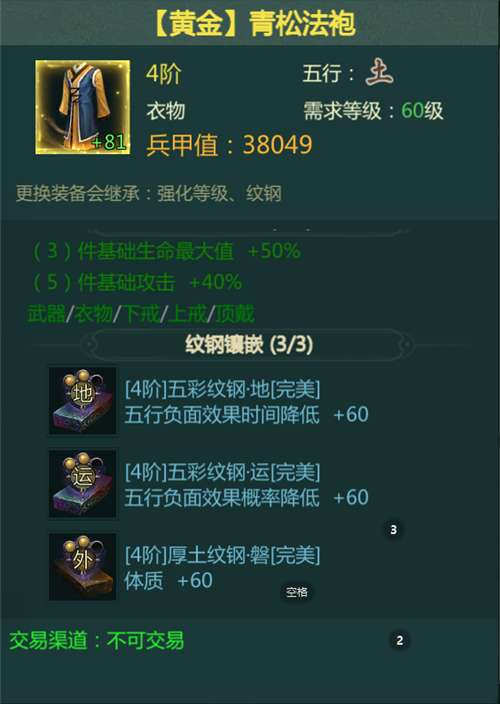 比如说你本身是土系职业,你有紫色单手剑武器兵甲值很高,五行也是正确的,但是它的词条全是格挡、体质;你有蓝色单手剑,兵甲值低一些,但是它的词条是内功、内功土系伤害等输出词条,这时候不要在意兵甲值高低,一定要带词条正确的武器。