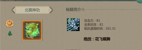 金色通用攻击力秘籍,效果为攻击力、全系抗性、会心抵抗,获取方式为秘籍抽取或者拍卖获得,未获得此秘籍可以使用《玄冰碧火功》等紫色通用攻击力秘籍。