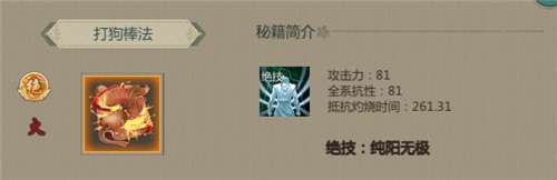 金色通用攻击力秘籍,效果为攻击力、全系抗性、抵抗灼烧效果,获取方式为秘籍抽取或者拍卖获得,未获得此秘籍可以使用《玄冰碧火功》等紫色通用攻击力秘籍。