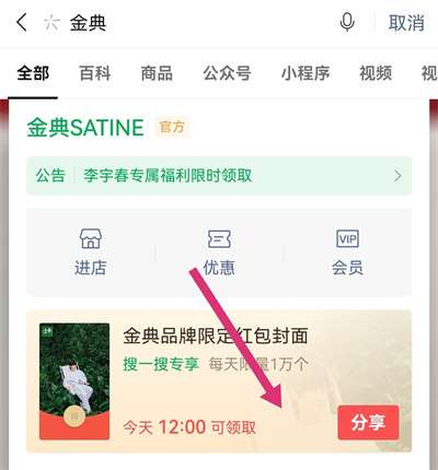 (4)这里拿“金典”举例,在中午12点去微信搜索“金典”,点击下面的红包封面进去,直接即可领取到相应封面;