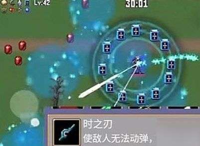 1、首先玩家需要用到的技能有鞭子,鞭子+空洞之心=吸血鞭。圣经、空洞之心、大蒜阵,最重要的一个时之刃,他可以冻结死神。