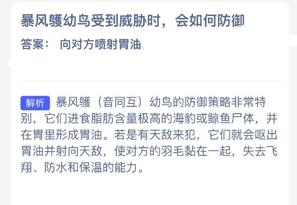 以上就是暴风鹱幼鸟受到威胁时,会如何防御?神奇海洋今天答案最新2025年12月5日分享,更多相关攻略内容,请点击关注pk游戏网更新!