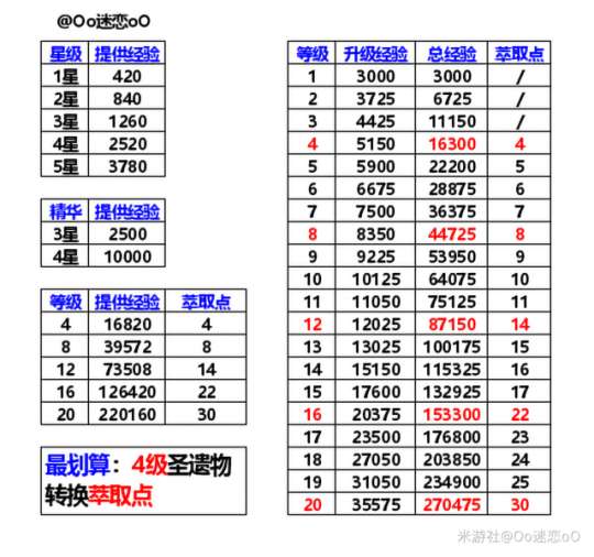 从圣遗物提供经验角度,最划算:4级圣遗物转换萃取点