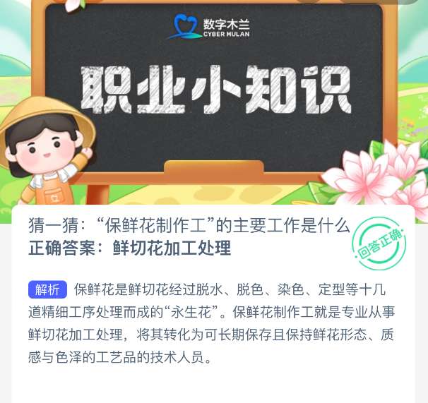 1、猜一猜:“保鲜花制作工”的主要工作是什么