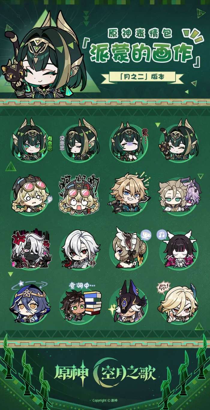 值得一提的是,原神官方最近也公布了最新一期的「月之二」版本表情包「派蒙的画作第45弹」现已上线,如图所示。