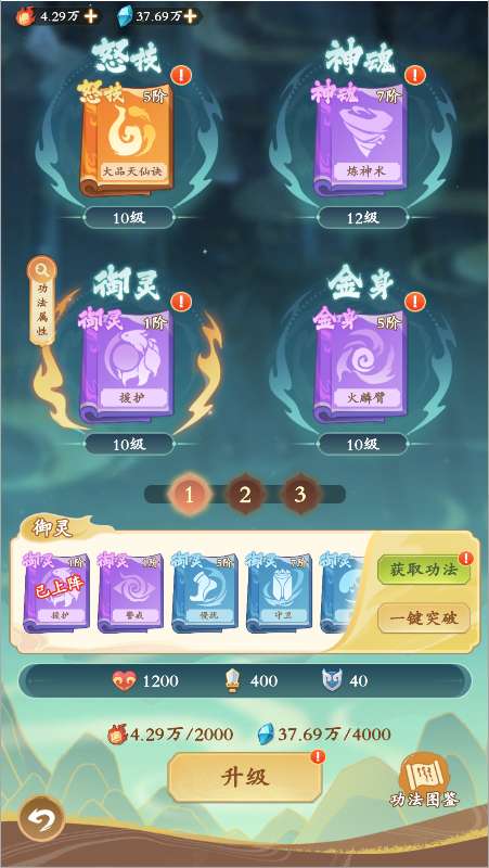 消耗同名功法可以进行功法突破,解锁高阶功法效果。