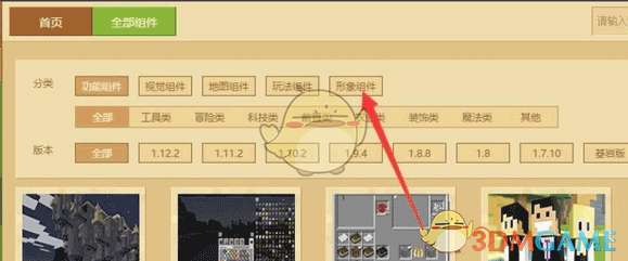 3、打开全部组件后就可以根据关键词找到自己需要的的组建,皮肤属于形象组建,这里就打开形象组建。