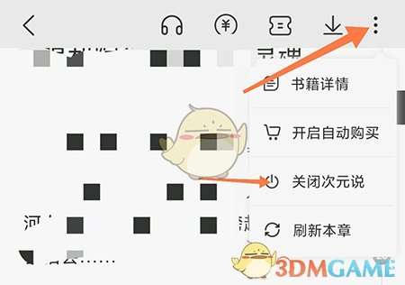 3、进入阅读页面,点击右上角的三个点按钮,弹出选框,选择关闭次元说即可。