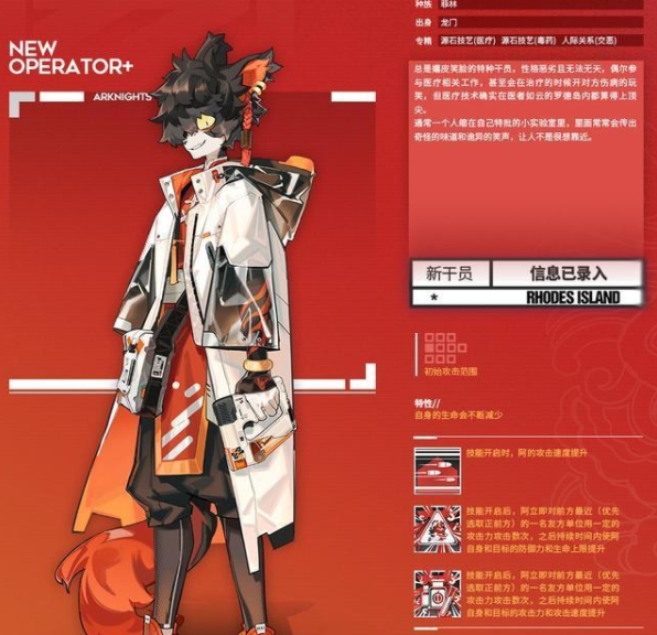 常规立绘和Q版小人的形象还不错,整体攻击方式也以打出类似羽毛球一样的针筒作为特色,其出身龙门,专精源石技艺的同时,人际关系还是交恶的,那基建技能基本上不需要期待了,又是鸡肋的基建,搓源石用的。