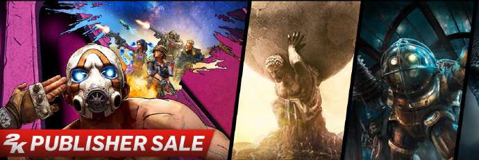 据了解,Steam的2K发行商特惠已经开启,《文明》系列、《生化奇兵》系列、《幽浮》系列以及《NBA2K》都在促销中,还有半价预售中的《无主之地3》。