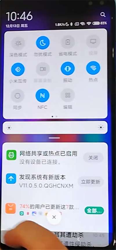 红米k30中调整状态栏开关位置的方法步骤