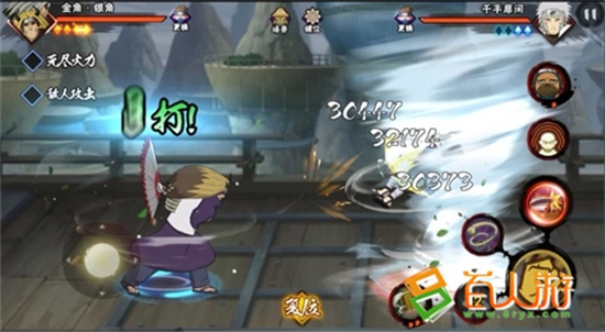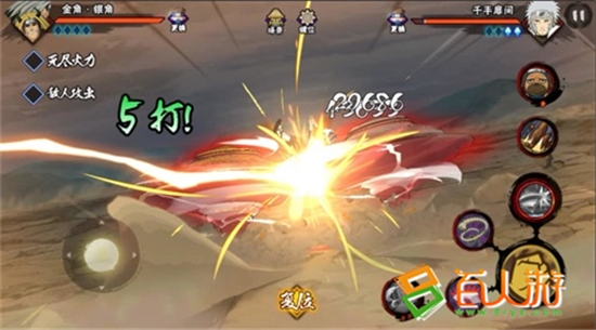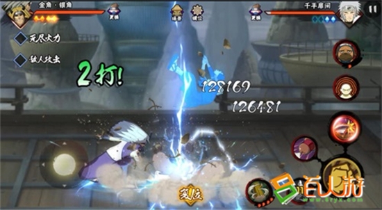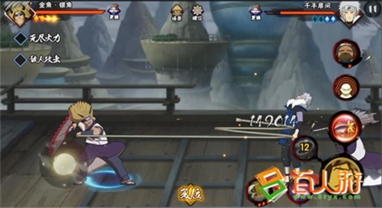 同时在战场中,也可利用银角“红葫芦”吸住对手,然后在衔接普攻进行伤害补足,在普攻间隙可以按技能键进行人物切换,不过要注意的是,银角的“红葫芦”攻击范围不是很大,容易让对手抓住机会丢出通灵兽反打,所以需要谨慎。技能“七星剑”可以击穿霸体,是一个非常强力的技能,面对开了霸体的纲手或天道时,能够让你无所畏惧。