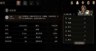 泰伦斯是偏力量型的角色,自身的特性比较适合和怪物硬刚,所以优先推荐点力量,智力几乎可以完全的舍弃。