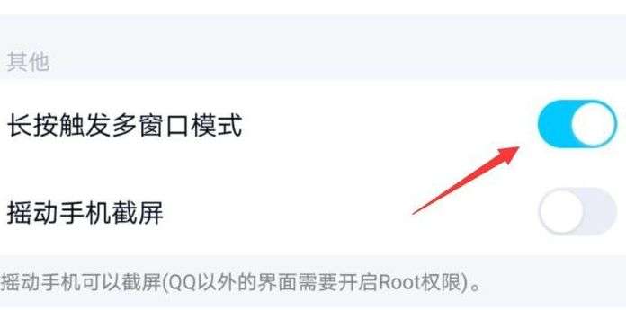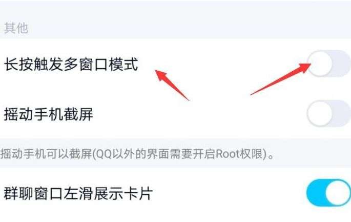 5、大家找到长按触发多窗口,点击右侧的开关,显示关闭即可。