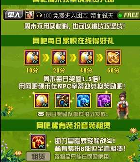 在网吧中登录DNF并游戏60分钟即可获得网吧硬币奖励,期间还可以获得100个时间引导石。