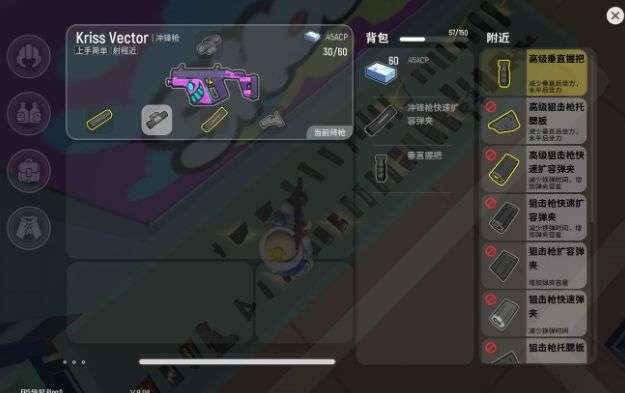 可以装的配件有:倍镜,枪口,握把,弹匣,枪托(战术枪托)