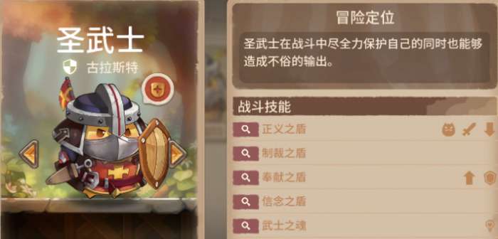 初始技能:正义之盾(触发技),对敌方目标造成自身攻击力200%的物理伤害,并对其附加2回合的虚弱。