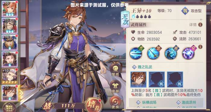 【魏之乱武】更能使王阿姨自身的伤害增加并提升魏国武将的最终免伤,自身所携带无视防御的特性能进行战场收割。【复仇】【无双之力】有着在绝境中翻盘的机会,放在6号位,是每一回合的结尾,能够更及时触发【复仇】特性。