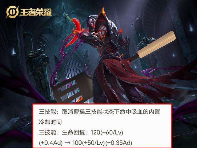 本次更新进一步对于曹操的大招做出了优化,将其内置的回血CD完全移除,就使得现在的曹操在更高的攻速加持下配合技能可实现完美的回复;作为平衡再次下调了其大招的回复量,整体削弱幅度在六分之一左右。