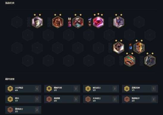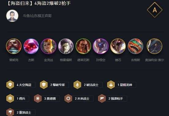前期可以使用枪手搭配两海盗进行过渡,吃连胜或者连败,触发海盗羁绊掉落的金币来快速积攒经济,中期搭配上源计划,保证阵容的坦度和输出,杰斯装备直接给到,稳定上人口,拿到船长阵容彻底成型。