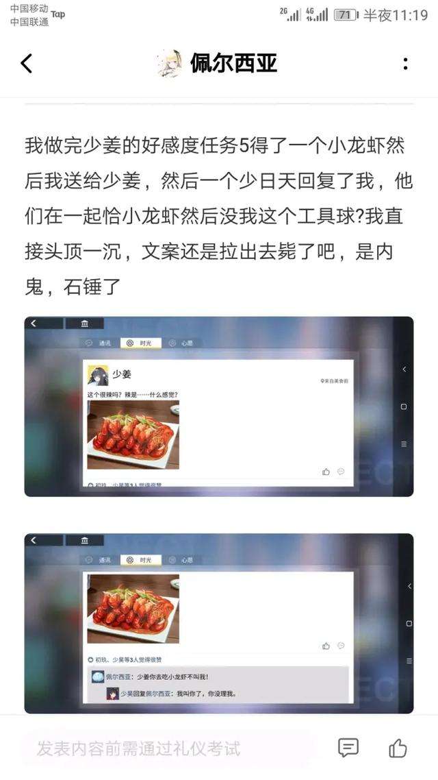 但是随着剧情的发展与各类角色的登场,玩家们惊奇的发现妹子们都不是心甘情愿地找上自己的——开局即送的贝黑莫斯,在官方设定上崇拜和喜欢月神,因为月神无比强大没有弱点;看板娘初玖,本以为是女主角般的玩家官配,实际上这样说也没错,不过男主角不是玩家,而是初玖同学一口一个叫着的少昊哥哥;至于最戳猫先生好球区的三无萝莉少姜,心心念念的也是她的少君,也即少昊哥哥。