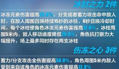 全伤害提高20%,角色对5迷内的目标造成的冰冻元素伤害提高20%,5迷外每远1米冰冻元素伤害降低2%。10米外不在降低。