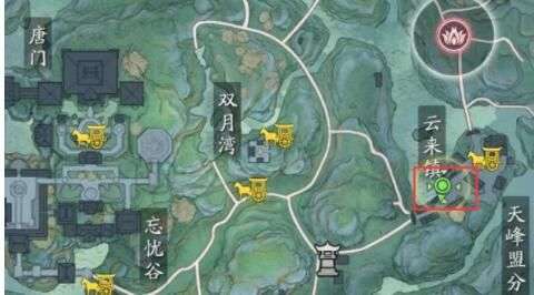 咒哥的位置其实非常容易找到,就是玩家来到巴蜀,然后在如图所示的地方,也就是云来镇这里,就可以看到这个咒哥了,虽然名字有个哥,但是其实她是女的NPC。与之对话即可顺利的完成。