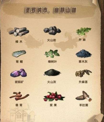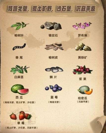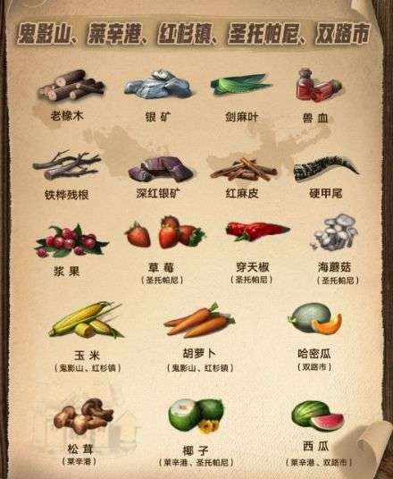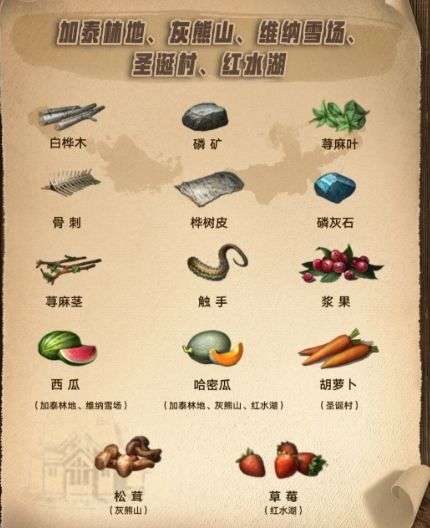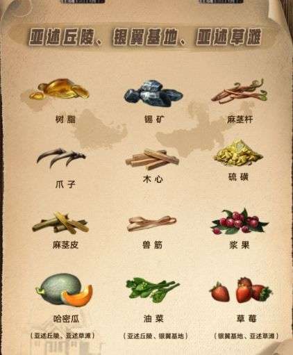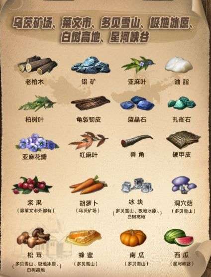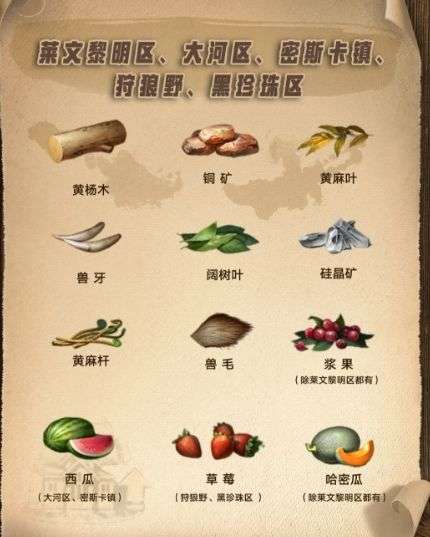 Tips:地图资源可以通过点击地图左上角,查看当前地图的特产,