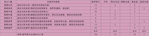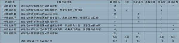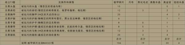 魔兽世界怀旧服全职业T3套装兑换表一览