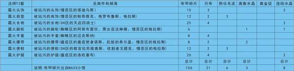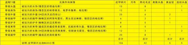 下面就是材料兑换表,建议大家收藏起来。