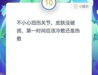 蚂蚁庄园12月13日更新了题目,此次的题目就是,不小心扭伤关节,皮肤没破损,第一时间应该冷敷还是热敷?如何解决这个问题,大家能够经过了一些思考,选择出自己认为正确的答案,该怎么解答,下面就来介绍下不小心扭伤该怎么办。