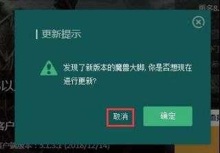 2、启动后若弹出“发现新版本魔兽大脚”,请点取消,不要更新
