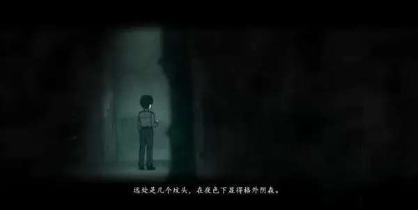 游戏一开始往右走,来到烟酒副食店,买到电池。回去把电池交给郑哥后,继续往右走,走到头发现回到了烟酒副食店。往前走发现,之前很正常的墙上出现了血迹。
