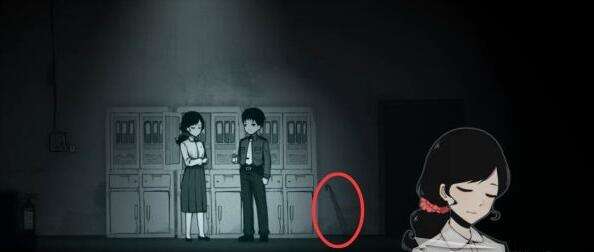 6、这个时候使用门旁边的相机进行世界切换,切换成简笔画的画面之后就会发现右边的柜子可以使用钥匙打开,这个时候切换成着正常世界,来到柜子使用钥匙打开中间的柜子,在鬼子当中得到一个红色的粉笔。