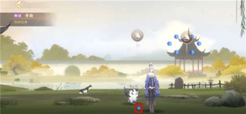 首先根据系统提示,向右边探寻,走到王羲之身边,点击石头上出现的鹅食。