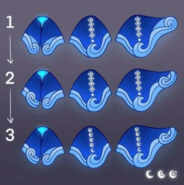 在最初的设计中,斗篷的正面本来是对称的,但设计师发现,将其移植到3D建模,之后,这些漩涡看上去就像眼睛,有点吓人。所以,设计师最终决定,改变了漩涡的方向,使其朝同一个方向流动,更像是真正的海洋。