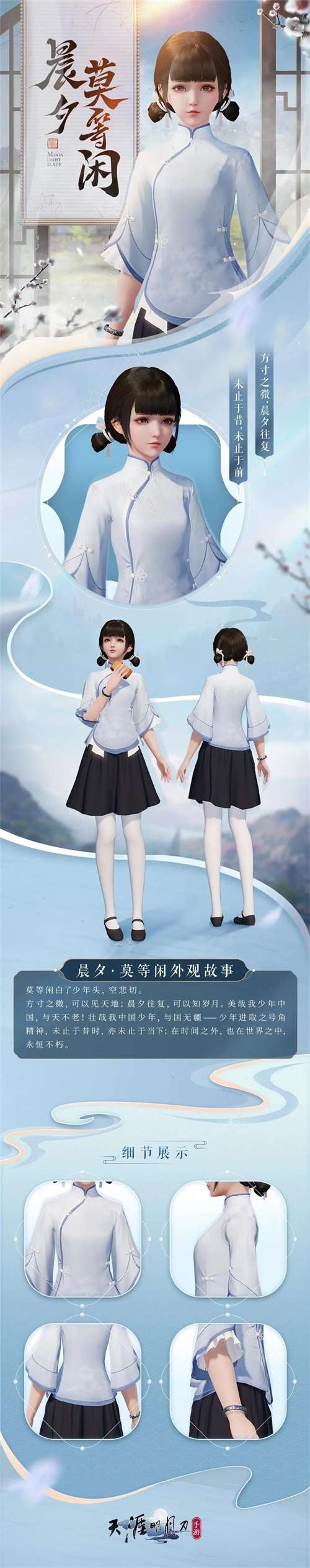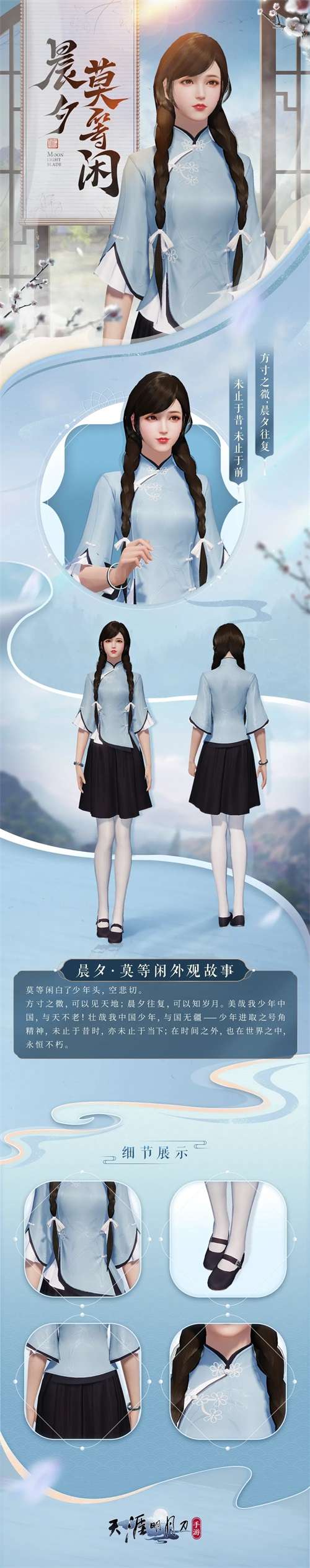 腾讯旗舰国风大世界手游《天涯明月刀手游》继素问、天芒、丹辉映喜之后,又送免费外观啦~4月29日-5月13日完成活动内容,全民普赠碧水青鸾!还有以“少年中国”为题设计的全新晨夕外观【晨夕·莫等闲】即将上新,与先前的天刀华裳不同,既有古典韵味,又具近代元素,让我们一起感念属于中华青年的昂扬之精神。