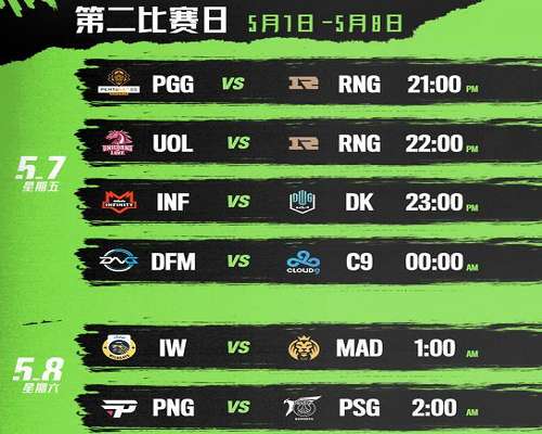 小组赛阶段为Bo1,在第二个比赛日共有六场比赛,分别是PGG对阵RNG、UOL对阵RNG、INF对DK、DFM对阵C9、IW对阵MAD、PNG对阵PSG。在这六场比赛中,大家可以重点关注RNG的两场比赛,都是安排在前两场,比赛时间对国内观众也非常友好。