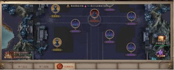 活动介绍:勇士通过占据祭坛向深渊聚能,每隔一段时间完成一次聚能可获得深渊馈赠。占据祭坛后祭坛会进入保护时间,300秒内无法被他人驱逐,保护时间过后勇士需靠自身力量守卫祭坛。深渊空间极不稳定,每日24:00—12:00会爆发空间风暴,无法进入。
