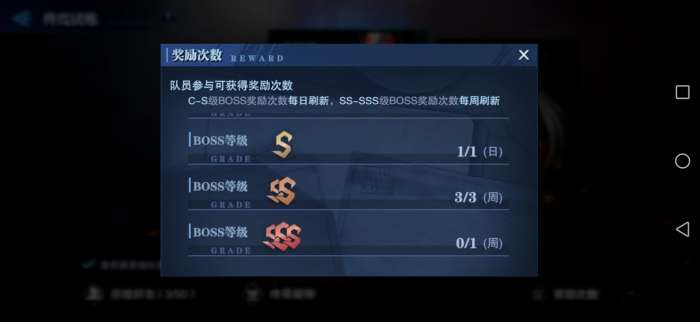 再就是我们的试炼,这个也是运气成分,BOSS奖励分c-s,ss-sss,所以途径还是多样的。
