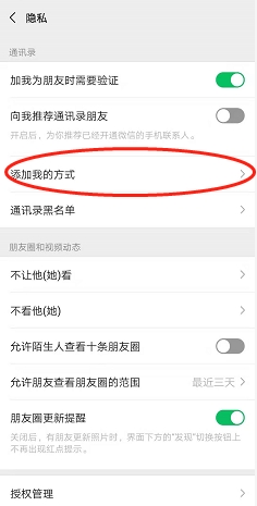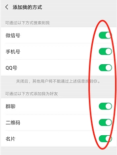4、然后我们可以选择你想屏蔽的一些添加你好友的方式关闭就行