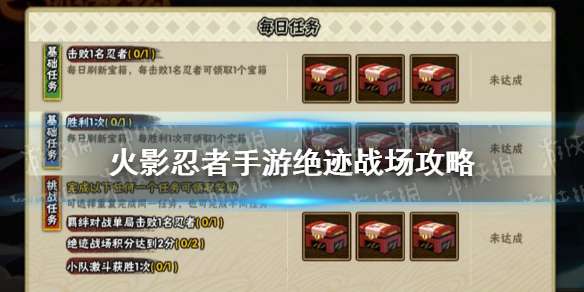 以上就是火影忍者手游绝迹战场攻略介绍给大家带来关于火影忍者手游的所有内容啦,希望能在游戏中对你的游戏体验有所帮助,更多相关的游戏资讯可以关注,感谢你的观看。