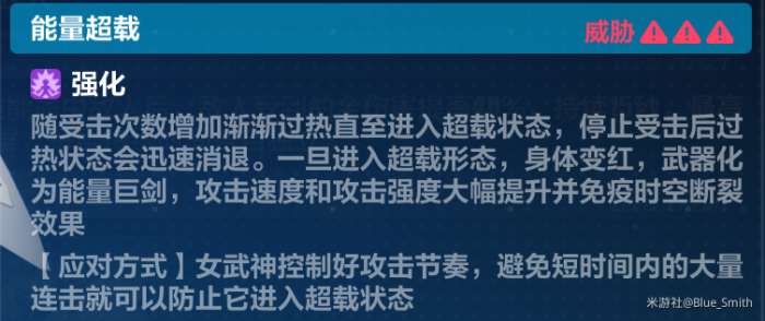 4.BOSS机制:海姆达尔有四格护盾,在其开盾过程中,一些攻击可以破盾,每破一个都会增加受到的伤害。四格全破后会瘫痪。海姆达尔受到大量攻击后会进入超载状态。,此时它不会开盾,会疯狗一般攻击,还有很高的减伤很高的减伤很高的减伤。半血以后如果先前没有进过超载,会立刻进入超载。