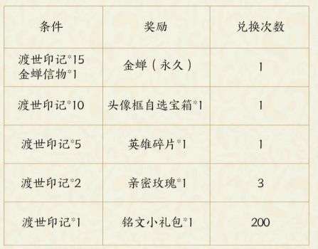 玩家通过收集渡世印记*15+金蝉信物*1即可兑换永久金蝉。