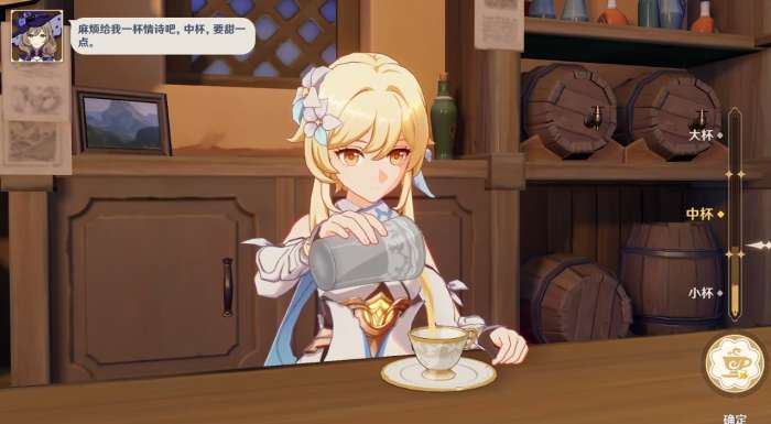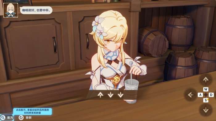 3.接着按 照琴的提示,我们直接加入三份咖啡,QTE过后选择中杯即可完成。