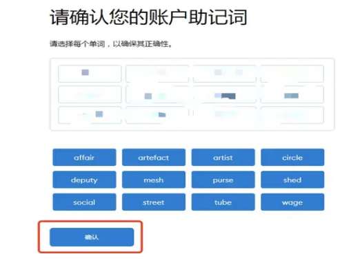 9.记录密语后会要求再重新输入一次密语,最后点击“确认”。