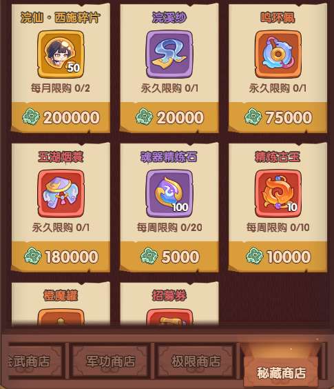 主公们在副本中获得的秘藏币可以在商店中兑换各种战魂培养材料。激活战魂后推荐优先兑换魂器,强化战魂的技能效果。