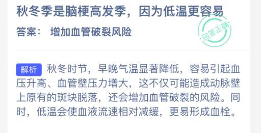 以上就是秋冬季是脑梗高发季,因为低温更容易?支付宝蚂蚁庄园2026年1月25日答案最新,更多相关攻略,请关注pk游戏网更新!